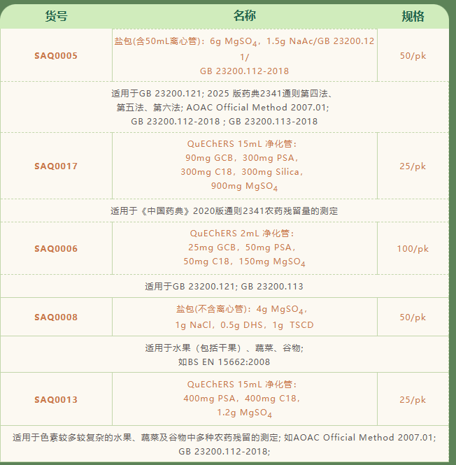 QuEChERS盐包、净化管